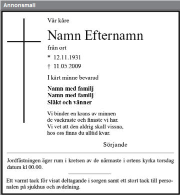 Via dödsannonsen minns ni er avlidne, berättar om bortgången, bjuder in släkt och